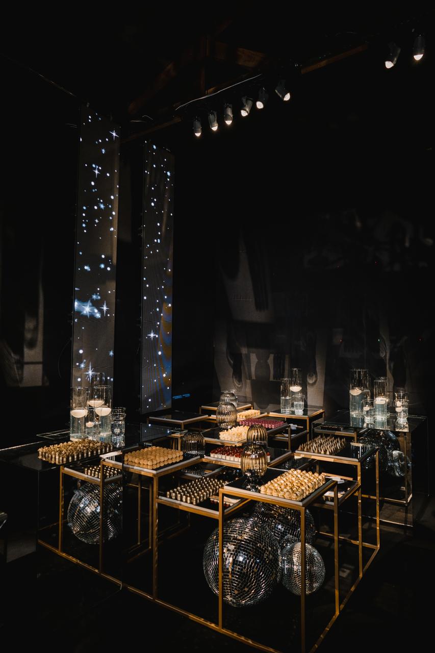 Mesa de centro Luminus alta - composta pela cor fendi nouveau com detalhes no dourado Soleil